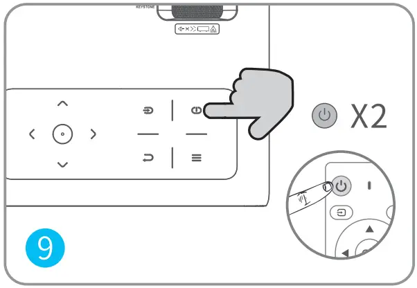 - Press the Power Button twice to turn off the projector