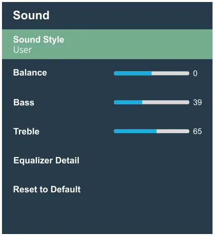 | Reset to Default | Press to restore original sound setting. | |
