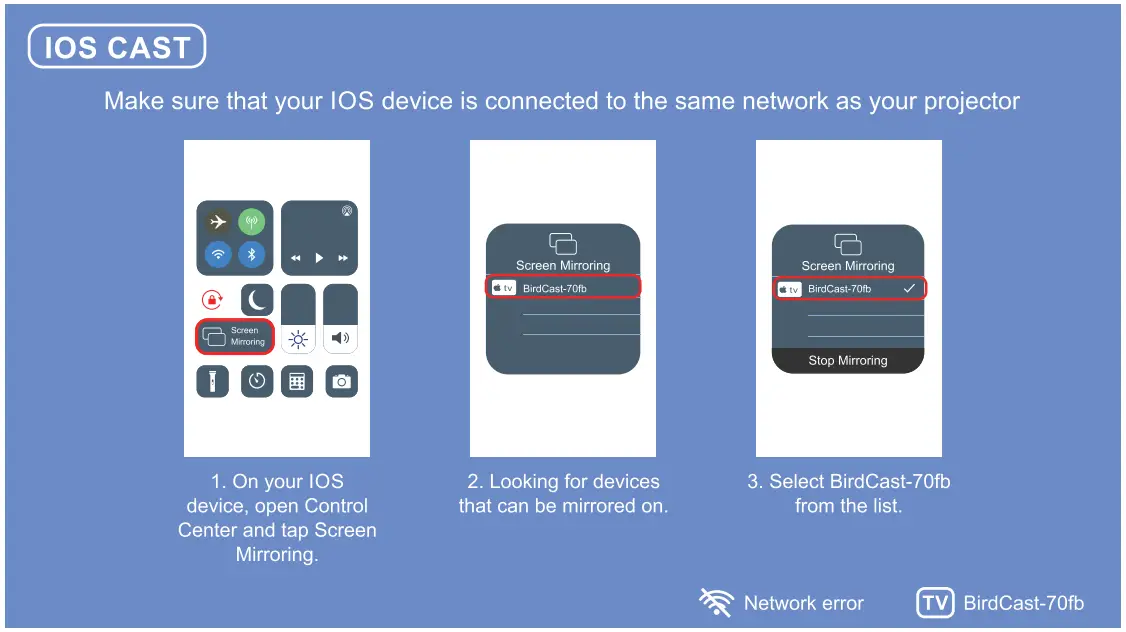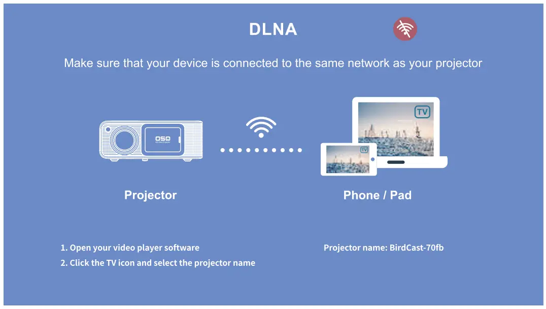- Make sure that your device is connected to the same network as your projector.