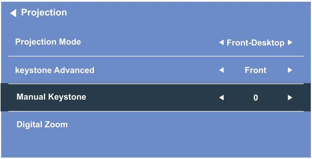 - Choose(Keystone Advanced), press Right button ► or Left button ◄ to turn it into ( Front Mode)