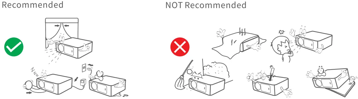 - Recommended projection size is within 100″ if using office suit playback to get the best effect.