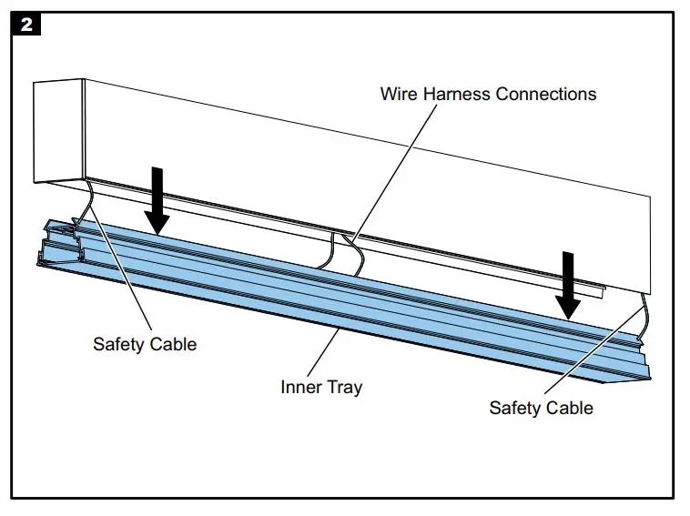 Lower the inner tray gently until safety cables fully engage and part is supported.