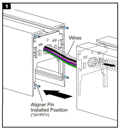 - Install (4) aligner pins onto the secured section of the run. Half of the aligner pin should be exposed to insert into the next section.