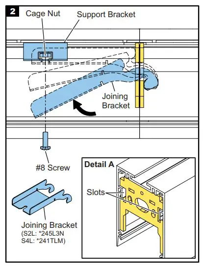 - Insert joining bracket through slots at ends of the sections. Refer to Detail “A”.