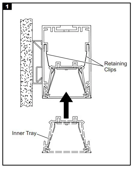 Secure mounting rails for the first fixture per pattern/row layout. Leave approximately 1-1/4” space from edge of the wall to mount the rail for the first