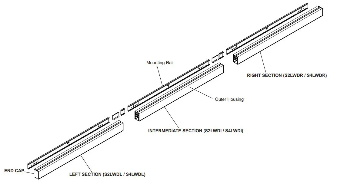 - Mounting rails are attached to each fixture section. Unscrew the