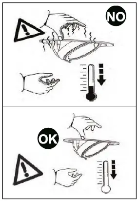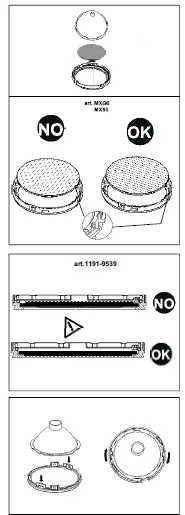 Replace the damaged protective screen, requesting the technical from the manufacturer. Do not use the luminaire without the screen. Be careful of the objects that deteriorate when exposed to UV rays.![]()