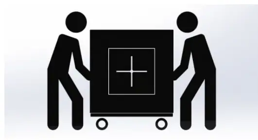 CAREFULLY REMOVE UNIT FROM CRATE AND PLACE ONTO MOVING DOLLY