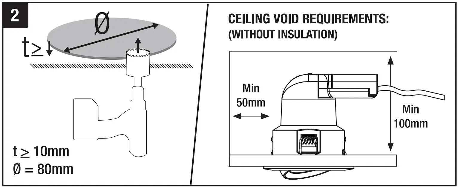 - These downlights must be disconnected before insulation resistance testing of the lighting circuit.