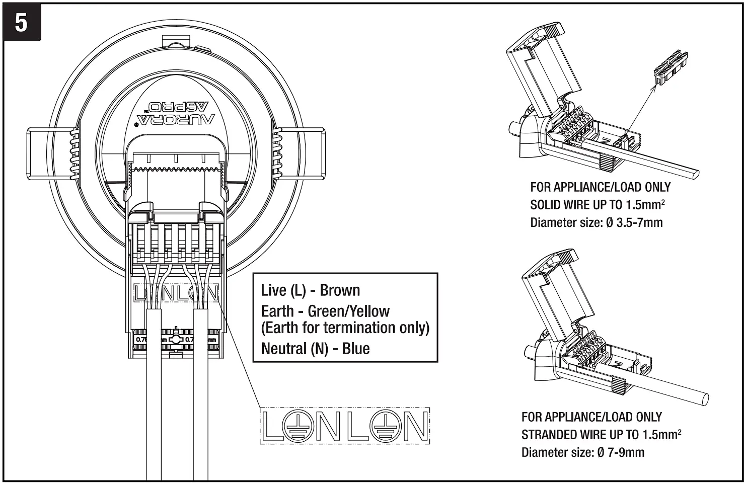 This product is guaranteed for a period of 5 years from the date of purchase. The guarantee is invalid in the case of improper use, installation, tampering, and removal of the Q.C. date label, installation in an improper working environment or installation not according to the current edition of the National Wiring Regulations. Should this product fail during the guarantee period it will be replaced free of charge, subject to correct installation and return of the faulty unit. Aurora does not accept responsibility for any installation costs associated with the replacement of this product. This warranty is in addition to the statutory rights in your country of purchase. Aurora reserves the right to alter specifications without prior notice.