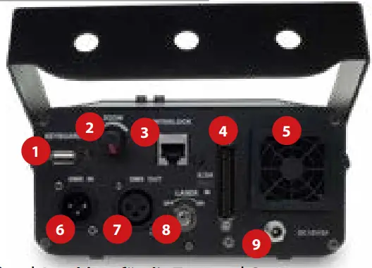 - Never use dimmer, RC or other electronically switched sockets. Whenever possible, do not use the laser projector together with large appliances (especially fog machines) on the same mains!