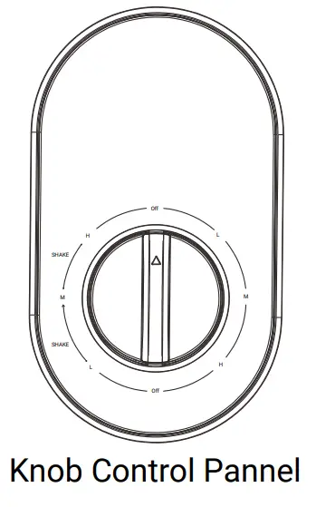 - Head shaking when the knob switch signs are rotated to “low” “medium” and “high” with “shake head”, the gear shake head function is turned on, and the machine function is turned off when it reaches “off”