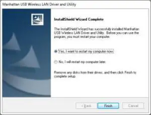 - When the Complete screen displays, select “Yes, I want to restart my computer now” and click Finish. The driver and utility are now installed.