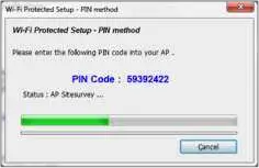 The wireless utility starts searching for wireless networks with a matching PIN code. This process may take several minutes, as indicated on the status bar.