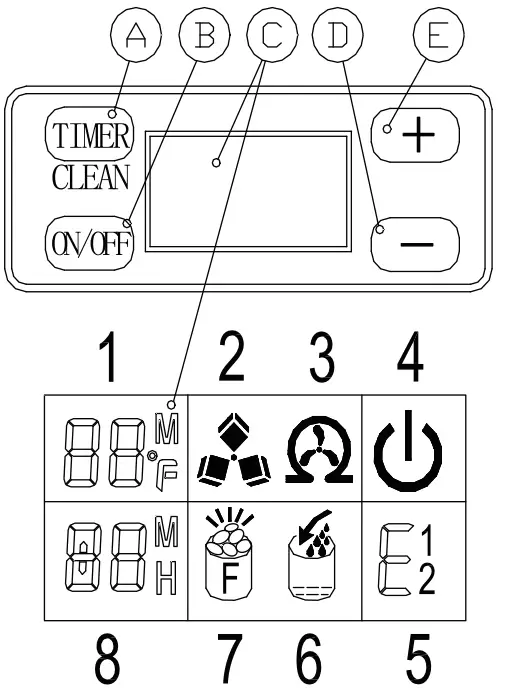 - Error code display. E1 means the environmental temperature sensor is damaged.E2 means ice making anomaly or the refrigerant leaked.