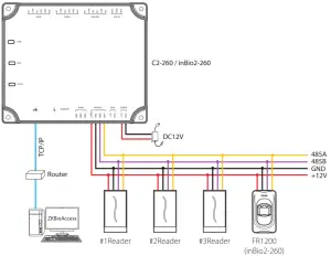 - It’s recommended to connect maximum four readers to one C2-260/inBio2-260.