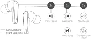 In riormal mode. hold R earbuc for 2 seconds to turn on ANC.