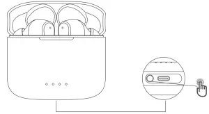 Put both earbuds back into the charging case, open the cover and hold the multi-function button of charging case for 5s until four LED indicators in the charging case blink 10 times at the same time, it means clearing pairing records successfully.