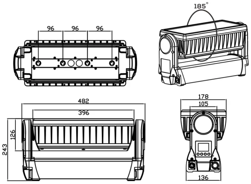 | DMX Address | 001-512 | Set DMX address |