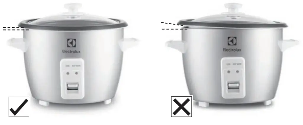 | Water escape from the lid or too many bubbles occurred during cooking. | Too much water in proportion to the quantity of rice used. | Use less water or increase the quantity of rice. |