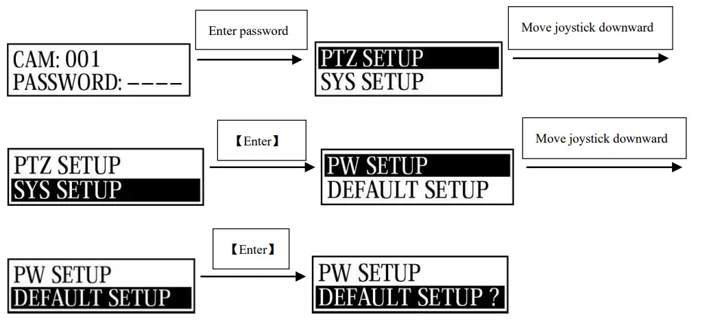 | Check the correspondence of camera protocol and baud rate settings if matching with KBD | change the protocol and baud accordingly, to let camera and KBD to match each other or restore the KBD default settings and change the camera settings accordingly | |
