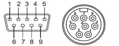 9-pin DB9 RS232 Full duplex Male | RS232 DB9 to camera RS232 8-pin Mini-DIN with included RS232 cable