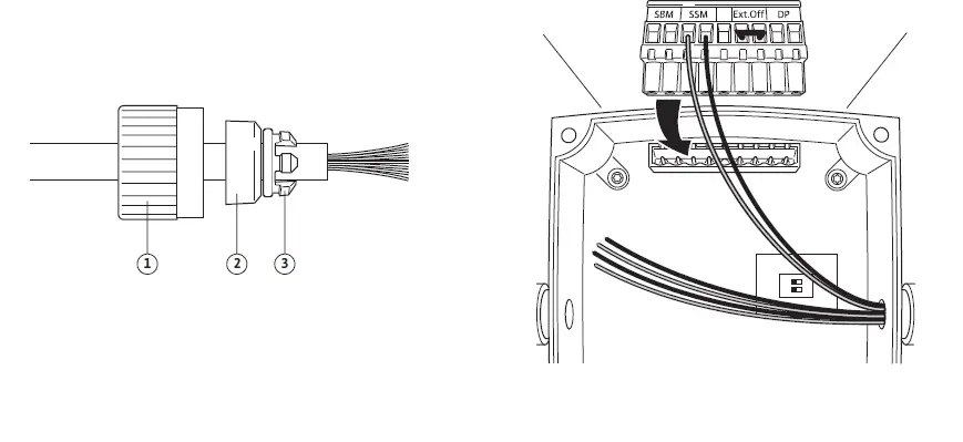 - Plug strip mains connection terminals and connection terminals WSK/SSM with connection cables
