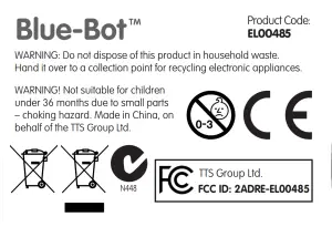 - In the event of a static discharge, your Blue-Bot may malfunction. In this case, please switch it off and then back on again to reset it.