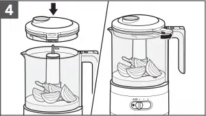 Place the Lid on the Bowl. Twist and lock it into place. The Lid will click when properly locked into place.