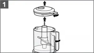 - Remove the Lid, Multipurpose blade, and Drive adapter. Hold the Base steady. Twist and lift the Bowl to unlock from the Base.