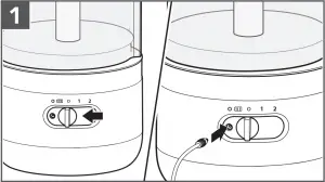 NOTE: The Cordless Food Chopper will operate with either the Multipurpose blade or the Whisking accessory in place, not both. Do not try to use both at the same time. - Slide the Speed controller to your desired setting (1 or 2).