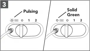 - The battery status indicator pulses when it charges. It will be fully charged in 2 hours and the Battery status indicator turns solid green.
