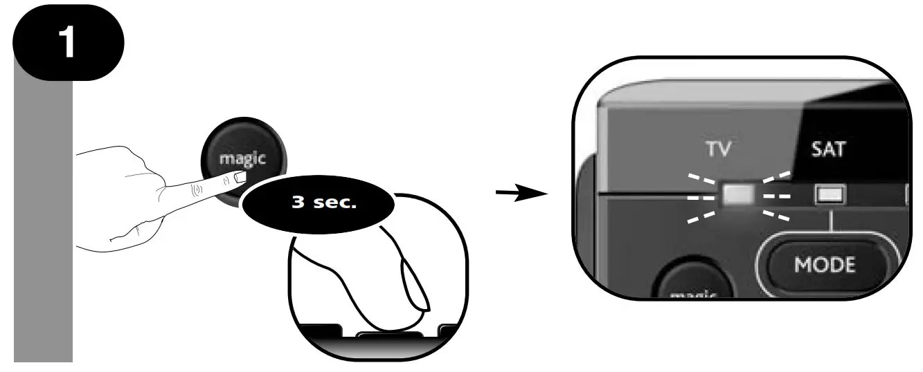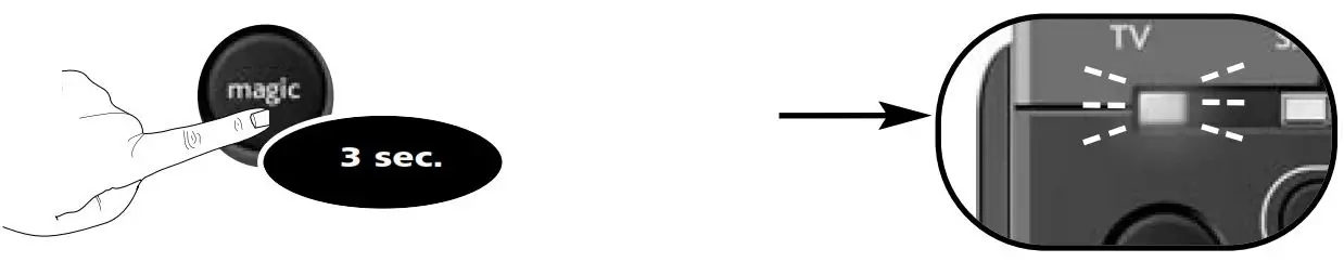 - Press and hold MAGIC for 3 seconds until a mode indicator (Blue LED) stays lit.