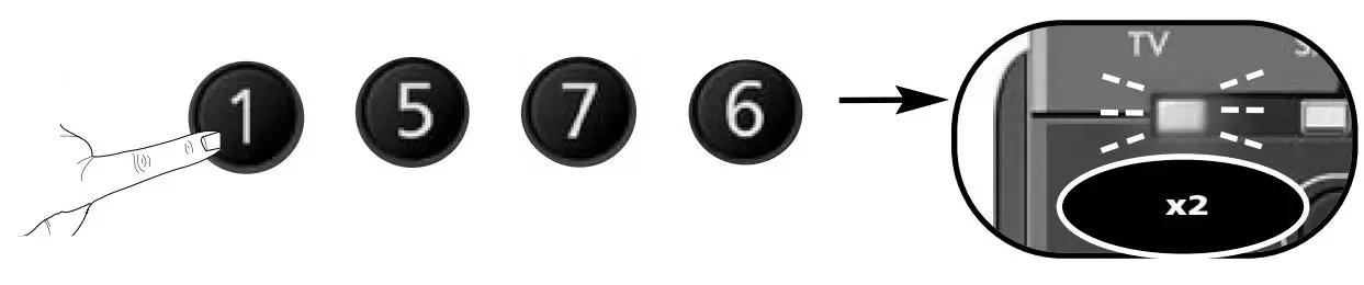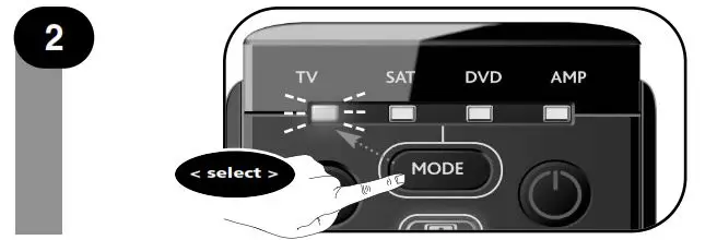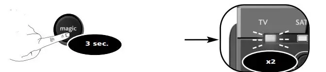 - First; Press the ”red” key. The TV LED will flash rapidly.then; Press the “I/II (mono/streo)” key. The blue LED will blink twice to