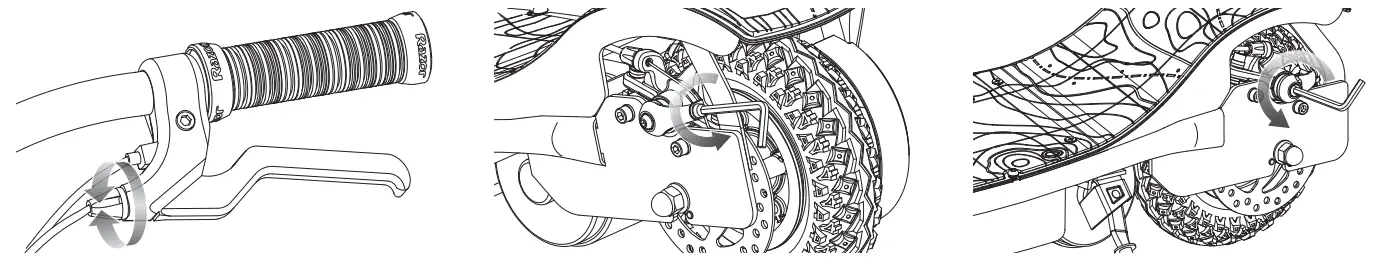 | Brake is dragging | Check the brake cable has 2-3 mm of slack at the lever. Cables should NOT be wrapped around the handlebar stem. Adjust brake cable slack according to page 7 instructions. | |