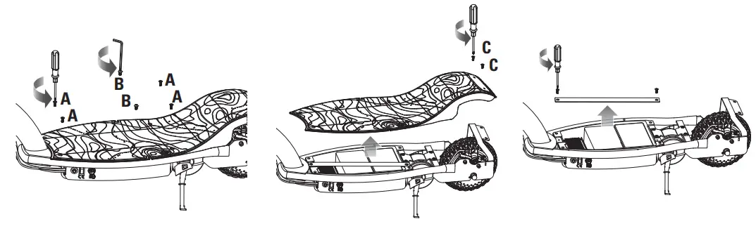 Before use, check to confirm that any and all chain guards or other covers and guards are in place and in serviceable condition. Check that the brake is functioning properly and that the tires are inflated properly and have sufficient tread remaining. The scooter should be maintained and repaired in accordance with the manufacturer’s specifications, using only the manufacturer’s authorized replacement parts, and should not be modified from the manufacturer’s original design and configuration.