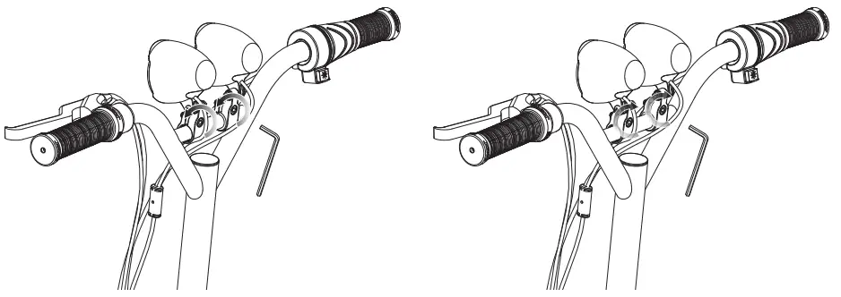 - With the front wheel pointed straight ahead and the handlebars square to the front wheel, tighten three (3) bolts on the clamp as shown with a 5 mm Allen wrench. Tighten securely.