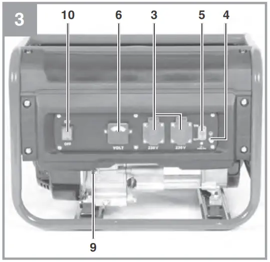 - The generator is driven by a combustion en- gine, which produces heat in the area of the exhaust (on the opposite side of the sockets) and the exhaust outlet. You should therefore keep clear of these surfaces because of risk of skin burns