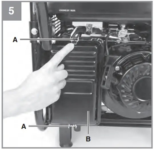- Open both clips (Fig. 5/A) and remove the air filter cover (Fig. 5/B).