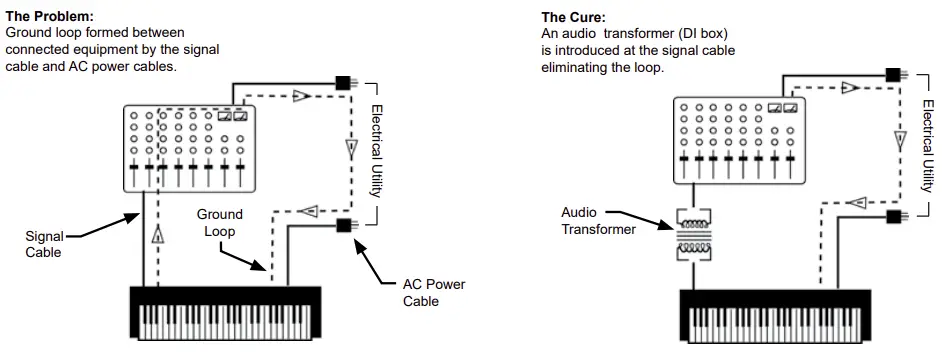 Buzz and hum caused by ground loops