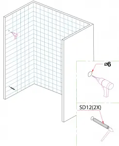 Step 3 – Along the drawn level line, mark 8” and 70” from floor. Using a 1/4” drill bit, you will drill the holes and install the wall anchors parts SD12.