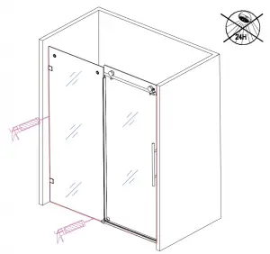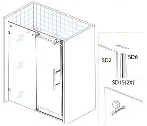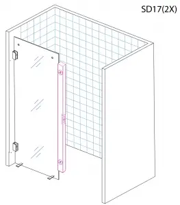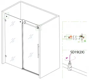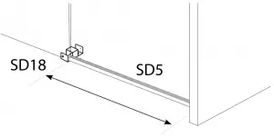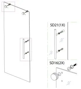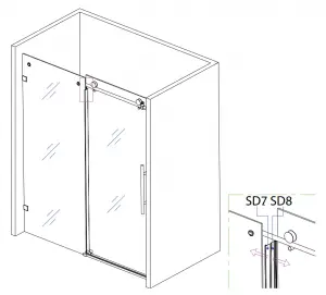 Install SD 15 clips on glass door to prevent the door from being able to come off rollers. Gently slide door from side to side making sure it is not binding anywhere along the bottom. Check the door is level and lines up evenly with the wall – if not, adjust the heights / level with the adjustments in door rollers.
