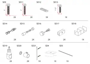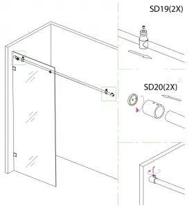 Step 12 – Adjust Parts SD 19 door stops on top of shower rod to ensure the door panel does not hit the wall or the door handle touches the fixed panel.