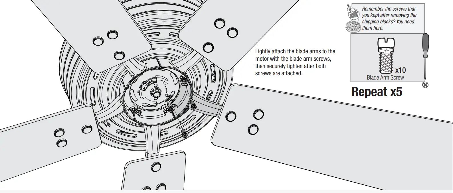 - CHECK the setscrew is tight using pliers each time you change fan direction