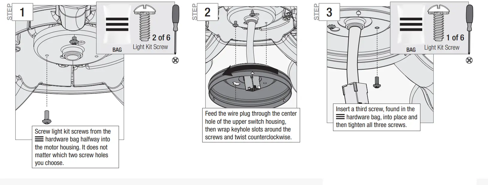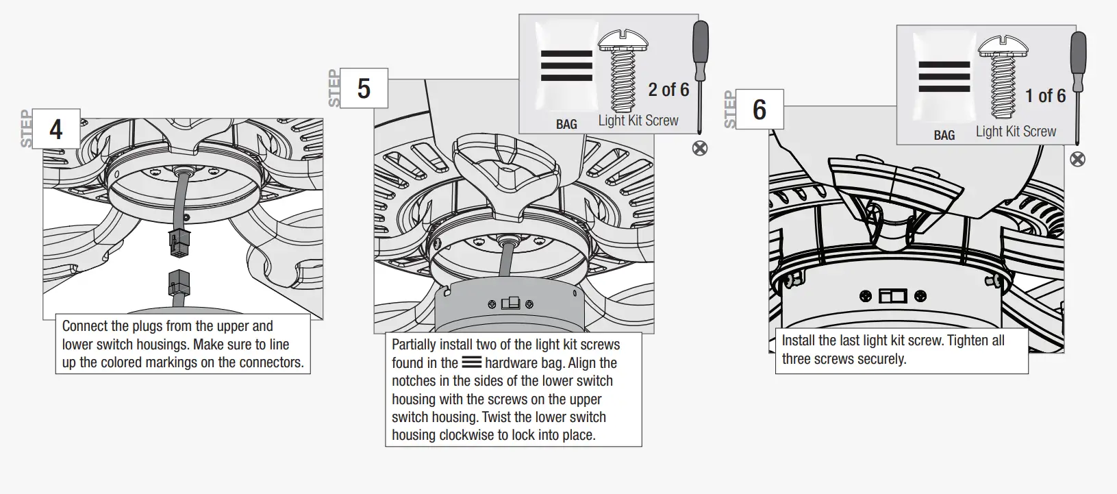 Make sure all three screws are tight to secure the lower switch housing to the upper switch housing