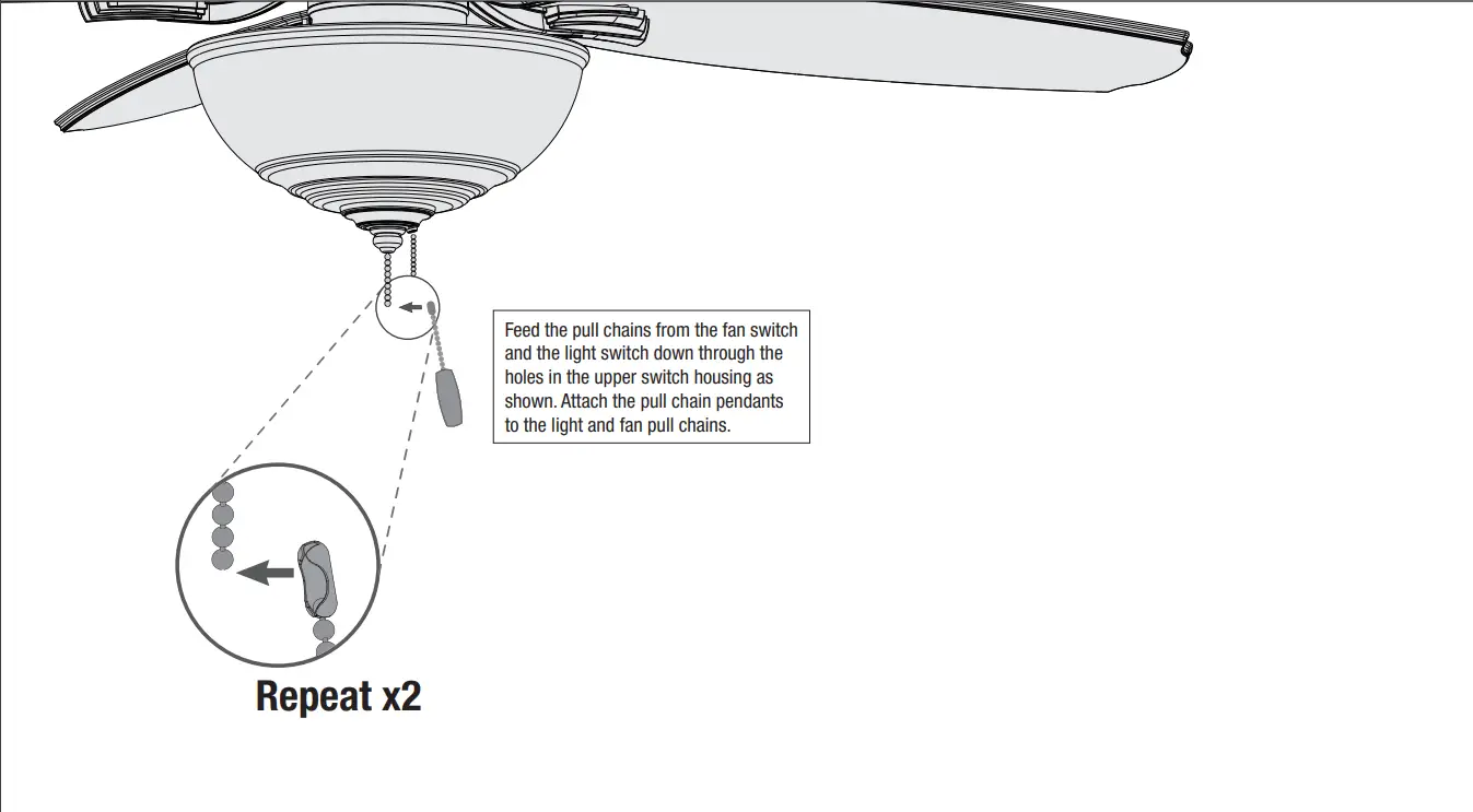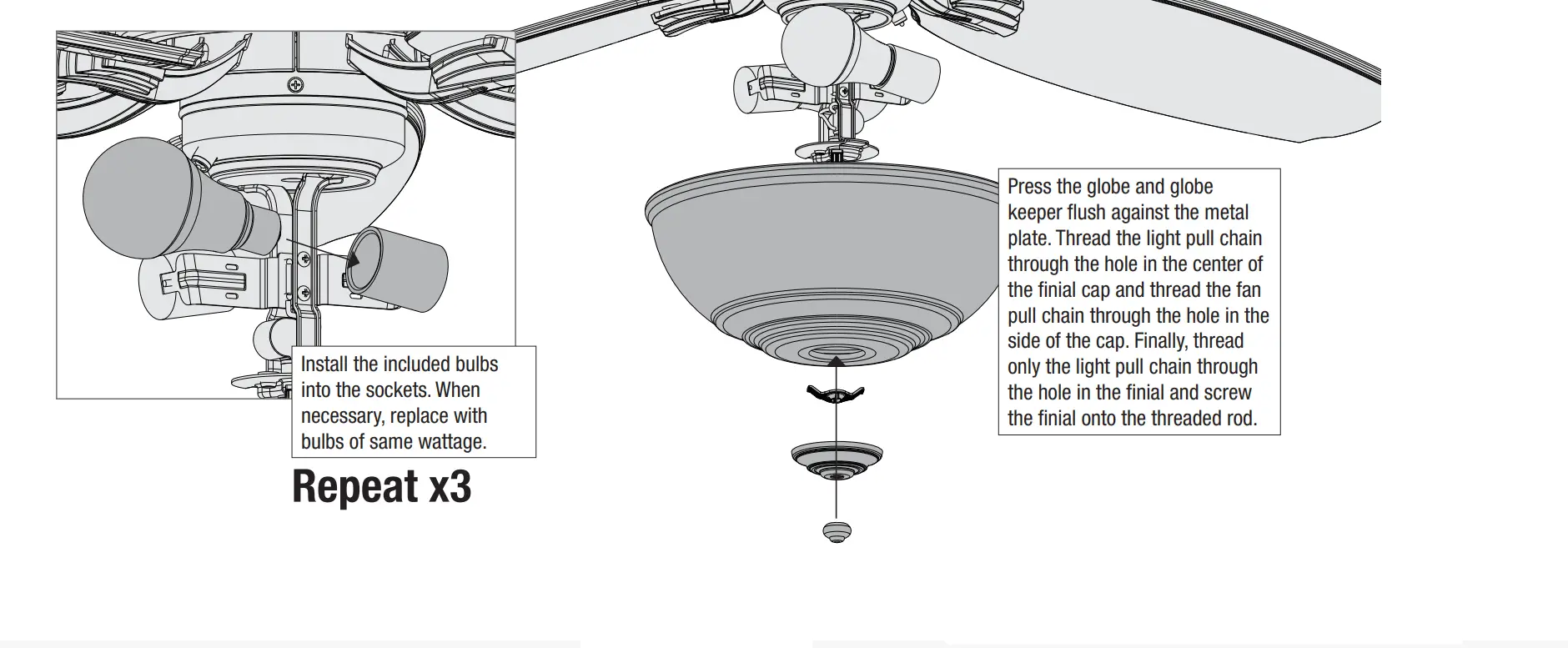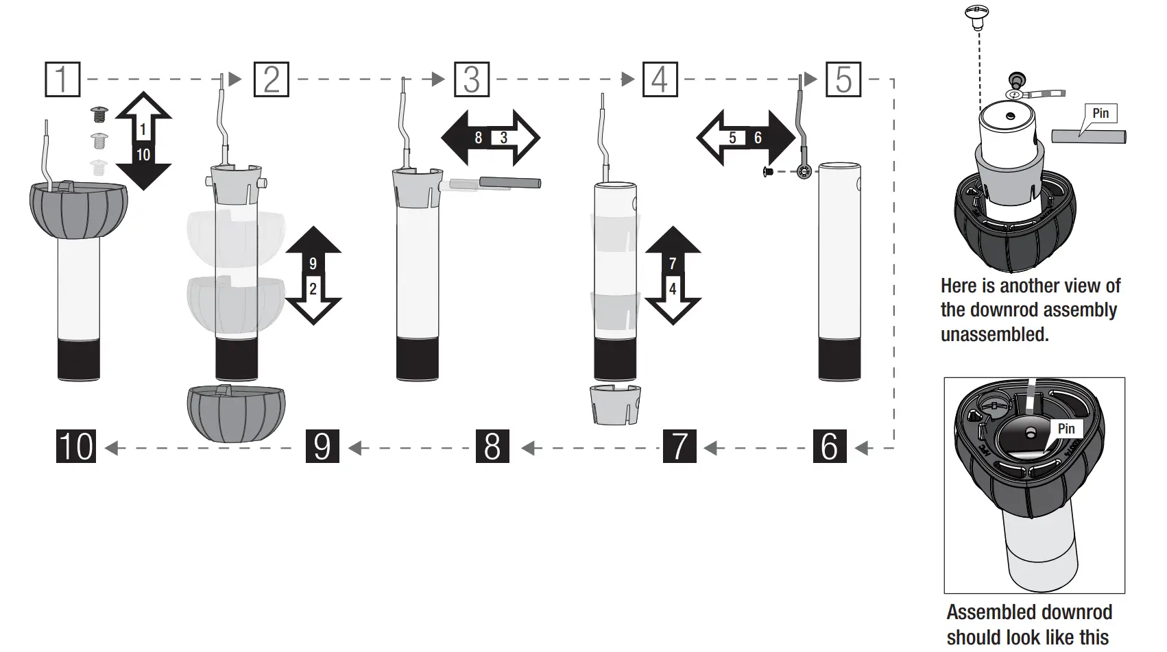 - VERIFY the downrod is assembled correctly by firmly pulling on the hanger ball.