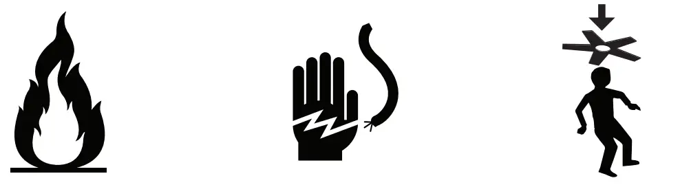 w.2 – To avoid possible electrical shock, before installing or servicing your fan, disconnect the power by turning off the circuit breakers to the outlet box and associated wall switch location. If you cannot lock the circuit breakers in the off position, securely fasten a prominent warning device, such as a tag, to the service panel.