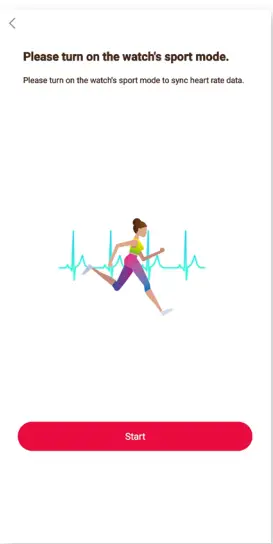 On the following screen, you will e instructed to begin Sports Mode on your watch. Do not press ‘Start’ on the phone screen until this is complete. Ensure your watch’s Sports Mode is set for the same activity as the phone for correct data, and then select ‘Start’ on the phone app. You will have a 3-second countdown on the phone to ensure you begin the watch task at the same time.