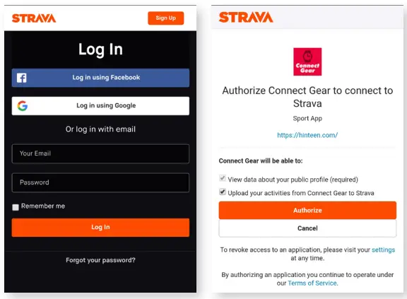 Authorize Strava for use via the Connect Gear app