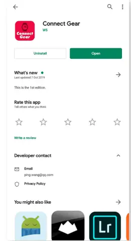 Using the Google Play Store (Android) or App Store (iOS), download and install the Connect Gear app. Upon opening the app, you will be asked to grant user permissions for the tasks the smartwatch can perform, such as making phone calls and SMS messages and accessing location information.